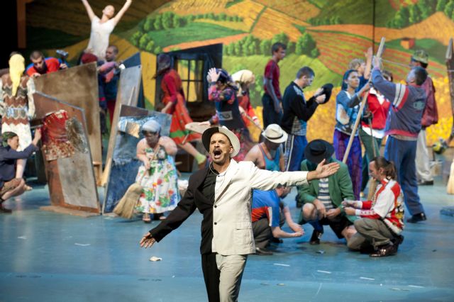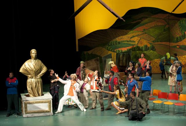 El director de cine serbo-bosnio Emir Kusturica reestrenó en Cartagena su ópera punk El tiempo de los gitanos. Un barullo divertido sobre la vida en los Balcanes. La puesta en escena es extravagante con un montón de gente que vive y baila sobre el escenario como si estuviera en un circo.