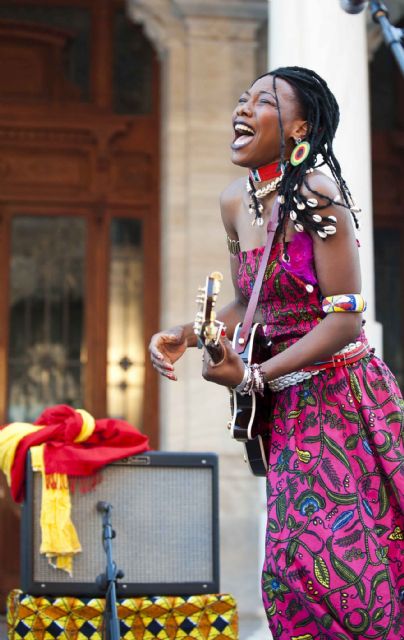 La artista de Malí actuó ayer ante el numeroso público que se congregó en la Plaza del Ayuntamiento