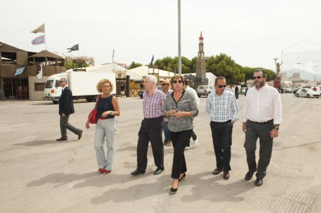El campamento de Carthagineses y Romanos ya está listo para que empiecen las fiestas. La alcaldesa, Pilar Barreiro, ha visitado esta mañana junto a los concejales de Seguridad Ciudadana, Festejos e Infraestructura, Mariano García, Florentina García y Francisco Espejo el recinto ubicado en el Cartagonova para comprobar el estado de los trabajos de Tropas y Legiones.
