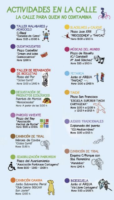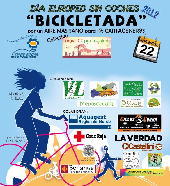La Policía Local de Cartagena y Protección Civil darán escolta el sábado, día 22 de septiembre, a los participantes en la marcha ciclista por la movilidad que ha organizado el colectivo Movilízate por Tu Salud, para conmemorar el Día Europeo sin Coches.