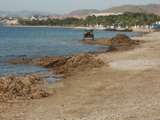 El Instituto Municipal de Servicios del Litoral ha puesto en marcha un dispositivo para llevar a cabo las tareas de limpieza y reparación de los desperfectos que las fuertes lluvias del viernes han provocado en las playas de la zona oeste de la costa cartagenera.