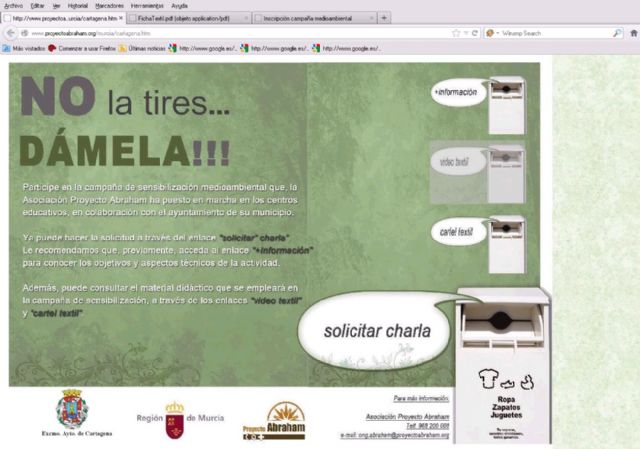 En este sentido y para acercarse un poco más a la sociedad, se ha puesto en marcha a través de la web de Proyecto Abraham, una aplicación para que los centros educativos puedan informarse y solicitar on line charlas de una hora, aproximadamente, en las que se enseña a los chavales cómo reciclar y la importancia de la separación selectiva de residuos.