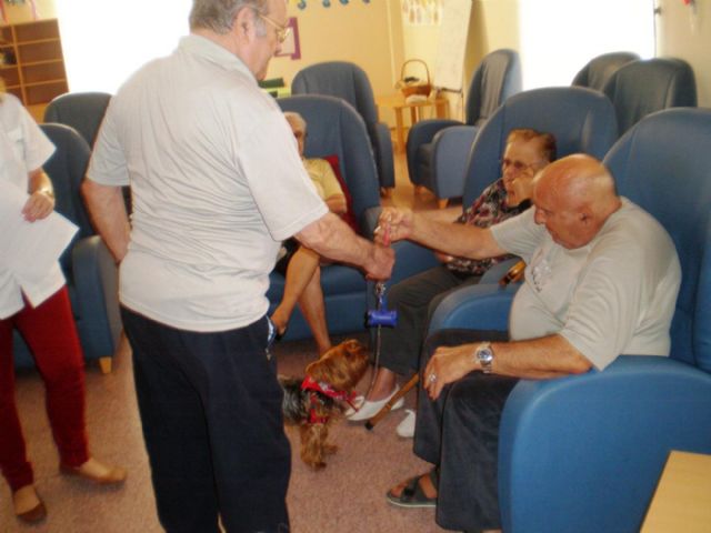 Durante los meses de octubre y noviembre los mayores del Centro de El Algar, gestionado por la Asociación Edad Dorada Mensajeros de la Paz Murcia, están participando de los beneficios de dicha terapia, compartiendo un tiempo de disfrute y convivencia con un perro de raza Yorkshire adiestrado por la psicóloga del centro.