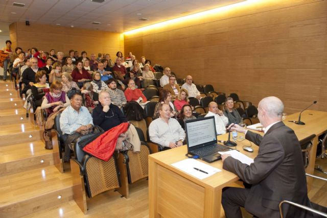 El primer conferenciante fue el catedrático de Arqueología de la UMU, José Miguel Noguera, con Roma y el poder de las imágenes, al que siguió ayer miércoles La imagen y los mitos en la antigüedad, a cargo del profesor de Filología de la UMU, Miguel Pérez Molina.