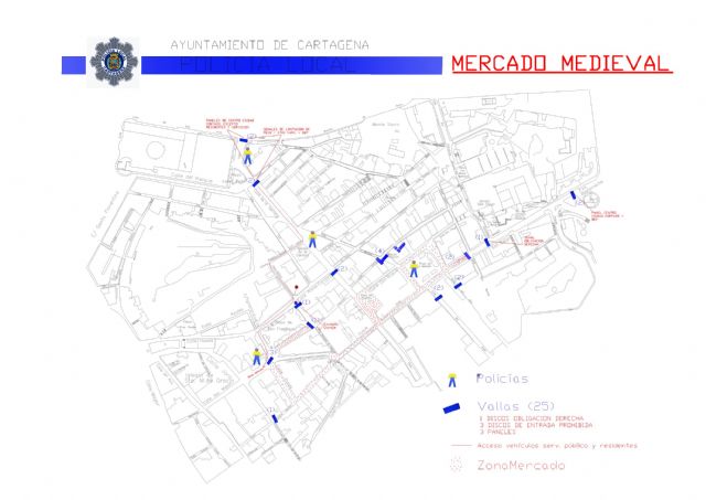 La Oficina de Tráfico de la Policía Local informa que desde el jueves, día 29 de noviembre, hasta al domingo 2 de diciembre, quedarán cortadas al tráfico rodado las calles San Diego, Duque, plaza de la Merced, plaza del Risueño, Caridad, Serreta, Pza. San Ginés, San Antonio el Pobre y San Francisco, con motivo de la celebración del Mercado Medieval del Casco Antiguo.
