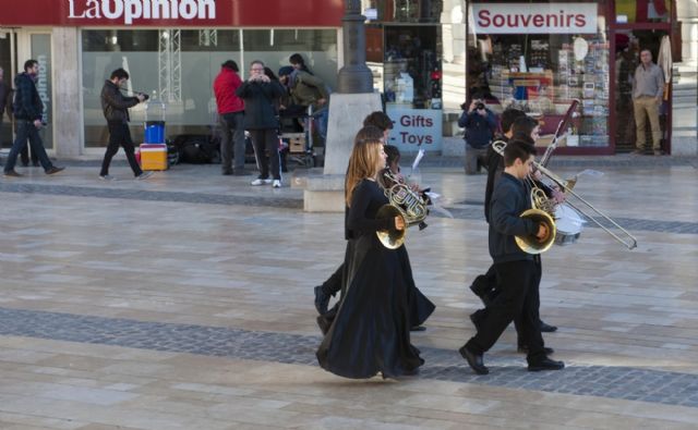 La grabación continúa hoy en el casco antiguo de Cartagena, donde un grupo de músicos aparecen tocando, caminando o descansando en lugares pintorescos de la ciudad, como son la Plaza del Ayuntamiento y del Risueño, o las calles Mayor, Duque, Gisbert y Ribera de San Javier.