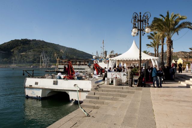 Una exhibición de pescado. Ésa es una de las actividades que se han desarrollado hoy en el puerto con motivo del Día Europeo de la Acuicultura. La concejala de Turismo, Carolina Palazón ha acudido a la inauguración de estas jornadas que se enmarcan dentro de las actividades que se han realizado en la Región para conmemorar este día.