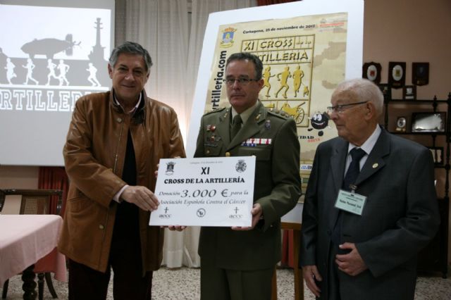 Esta mañana ha tenido lugar el acto de entrega de parte de la recaudación de XI Cross de la Artillería, que se celebró el 25 de noviembre, a la Asociación Española Contra el Cáncer, donativo que se ha materializado en un cheque por valor de 3.000 euros.