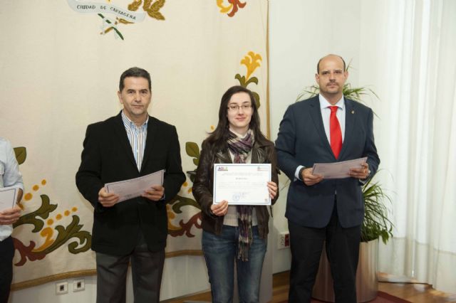 El concejal de Empleo, Diego Ortega, y el director de la Agencia de Desarrollo Local y Empleo, Francisco García Valenzuela,  han entregado esta mañana en el Palacio Consistorial los diplomas correspondientes a los 20 alumnos del Curso de Alemán Básico.