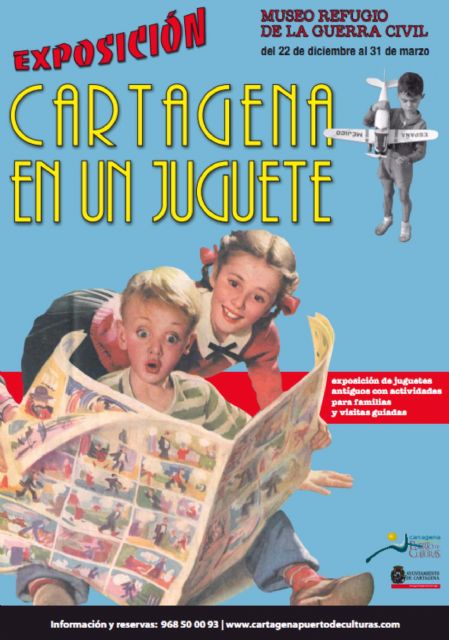 Bajo el título Cartagena en un juguete, Puerto de Culturas ha puesto en marcha una novedosa exposición de juguetes antiguos que podrá visitarse en el Museo Refugio de la Guerra Civil, del 22 de diciembre al 31 de marzo. Al acto de presentación han acudido la concejala de Cultura, Rosario Montero, la concejala de Turismo, Carolina Palazón, y la gerente de Cartagena Puerto de Culturas, Agustina Martínez.