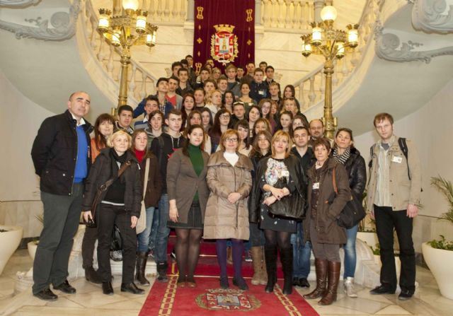 La concejala de Juventud, Ruth Collado, ha recibido en la mañana de hoy, martes 12 de febrero, a unas sesenta personas, entre alumnos y profesores de varios países, que forman parte, junto al IES San Isidoro de Los Dolores, del Proyecto Comenius.