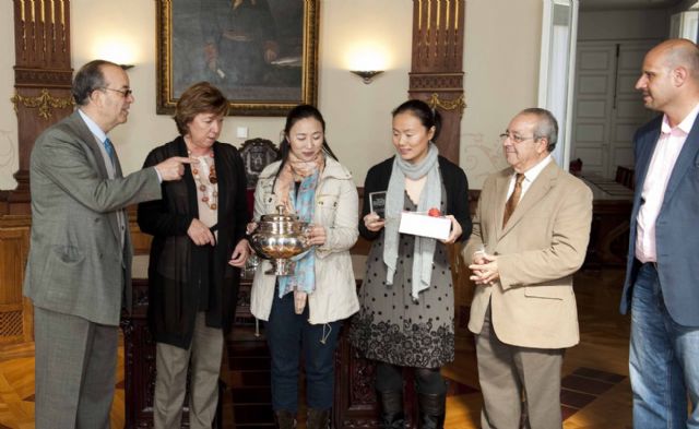 El equipo femenino del UCAM-Cartagena de Tenis de Mesa, reciente campeón de la Copa de la Reina, ha mantenido hoy un encuentro con la alcaldesa de la ciudad, Pilar Barreiro, en el Palacio Consistorial