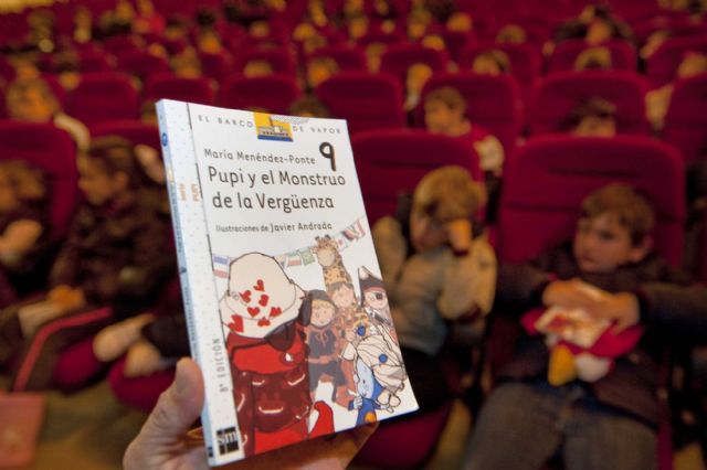 La autora ha compartido con los escolares las experiencias del personaje protagonista de su novela, Pupi y el monstruo de la vergüenza (Editorial SM). Las aventuras se dan cita en esta historia que ayuda a los niños a jugar con el lenguaje y descubrir que está vivo, comenta María. Y es que, por ejemplo, Pupi cuando habla del corazón le llama cucharón, a la vergüenza, virgencia o a la sangre, sangría.