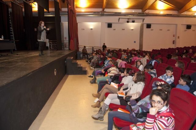 La escritora Catalina González ha tenido esta mañana el primero, de los tres encuentros, que mantedrá con los alumnos en las Bibliotecas Municipales de Cartagena