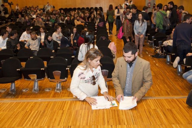 El escritor ha mantenido esta mañana el tradicional encuentro con los 600 estudiantes de secundaria en el Paraninfo de la UPCT. Antes de la charla, el autor, acompañado por la concejala de Juventud, Ruth Collado, y Juan de Dios García del IES Isaac Peral, ha atendido a los medios de comunicación que estaban presentes.