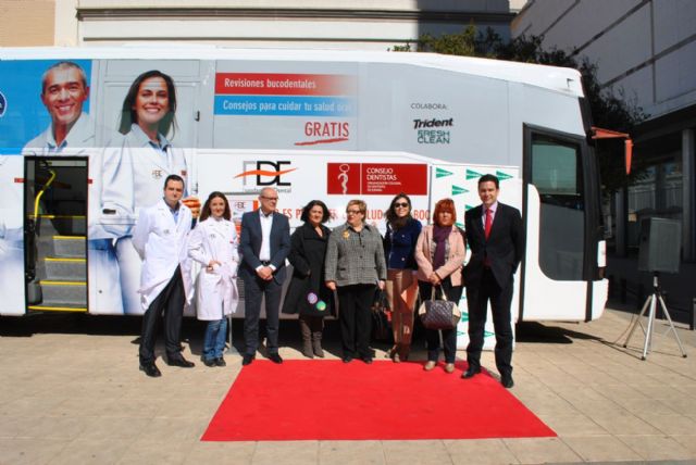 El Dentibús, el autobús de la Fundación Dental Española adaptado como clínica dental para la prevención y el diagnóstico odontológico, visitó Cartagena el pasado viernes 15 y sábado 16 de marzo, con el fin de cuidar la salud bucondental de la población. La concejalas de Mujer, Clara Heredia, y Educación, Josefa Maroto, acudieron a la unidad móvil, emplazada en la explanada de El Corte Inglés.