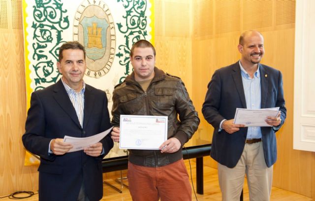Los veintidós becarios del programa Leonardo da Vinci seleccionados para realizar prácticas profesionales en los países de Alemania, Polonia y República Checa, han recibido esta mañana el diploma acreditativo de la preparación lingüística, de la mano del concejal de Empleo, Diego Ortega, y el director de la Agencia de Desarrollo Local y Empleo (ADLE), Francisco García Valenzuela.