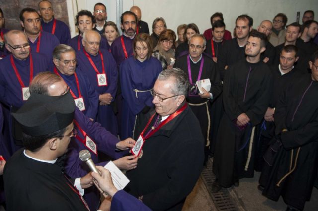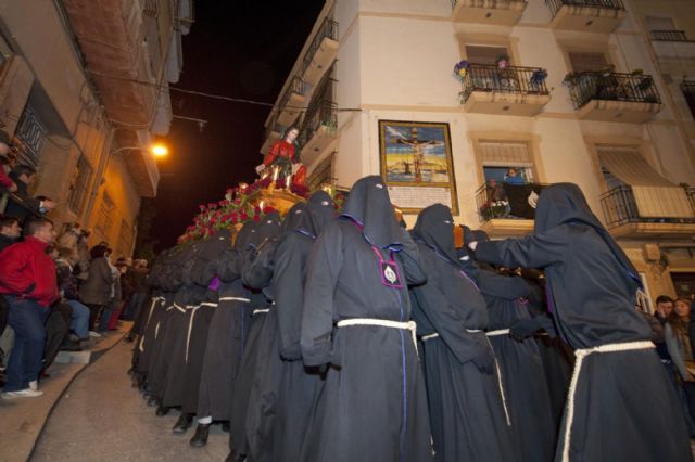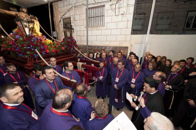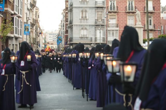 Cientos de cartageneros y miembros de la Corporación Municipal acompañaron la salida de una de las primeras procesiones de la Semana Santa de España, que inaugura la jornada del Viernes de Dolores, el día más importante de la ciudad de Cartagena