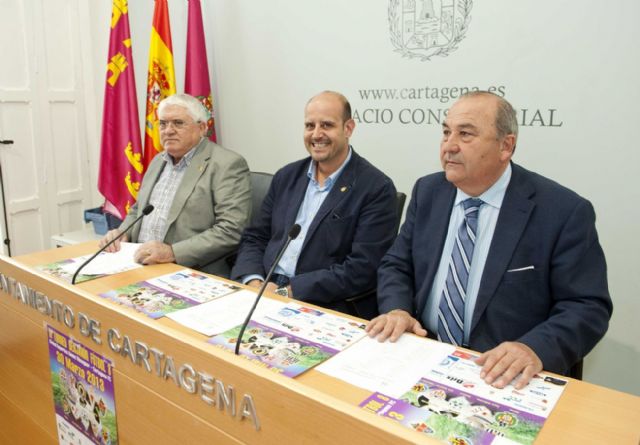 El concejal de Deportes, Diego Ortega, acompañado por el presidente de la Fundación Cartagena F.C., José Gómez Meseguer, y el vicepresidente de la misma, Nicolás López, han presentado esta mañana el IV Torneo Benjamín de Fútbol 8 Ciudad Deportiva Gómez Meseguer que se celebrará el próximo sábado 30 de marzo en Cartagena.