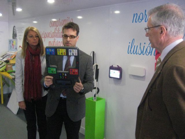 La exposición itinerante Lo mejor de la ONCE y su Fundación visita Cartagena para mostrar la labor de ambas entidades que cumplen 75 y 25 años, respectivamente. El delegado territorial de la ONCE en la Región de Murcia, Juan Carlos Morejón de Girón, y el concejal del área de Atención Social y Juventud del Ayuntamiento de Cartagena, Antonio Calderón Rodríguez, han inaugurado la muestra, junto al director de Apoyo de la ONCE en Cartagena, Germán Moya.