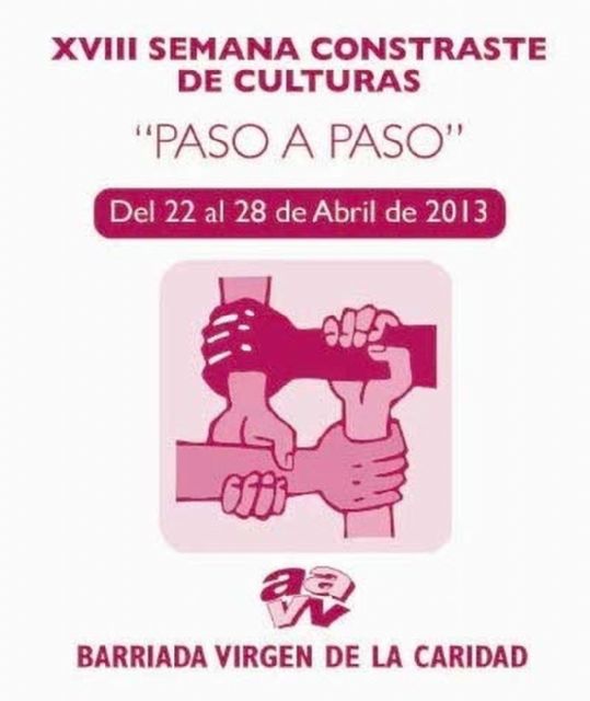 Esta Semana de Contraste de Culturas se ha iniciado en el día de hoy y se prolongará hasta el próximo domingo 28 de abril. Estas jornadas son organizadas por el Ayuntamiento de Cartagena, a través del Instituto Municipal de Servicios Sociales, la Asociación de Vecinos Barriada Virgen de la Caridad, Club de la Tercera Edad, ACCEM, Escuela de Fútbol Esperanza, Grupo de Voluntariado Cruz Roja de la Juventud, Colectivo Nigeriano y Colectivo Magrebí.