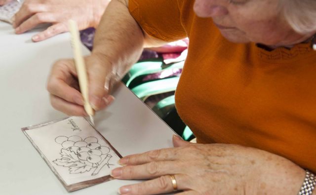 Primero elegir un dibujo en una plantilla, luego plasmarlo en una lámina de estaño, repujarlo con los buriles y cortarlo, para luego rellenar los huecos con cera, limpiar y abrillantar el estaño, y aplicarle la pátina y el barniz, estos son los pasos a seguir para trabajar el estaño, los mismos que siguieron las más de cincuenta 50 mujeres de distintas asociaciones de Cartagena que participaron en un Taller de Iniciación al Estaño.