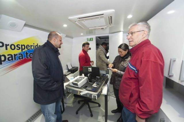 Los concejales de Atención Social y Empleo visitaron la unidad móvil del Consulado de Colombia que estuvo instalada en la explanada del Cartagonova los días 28 y 29 de abril