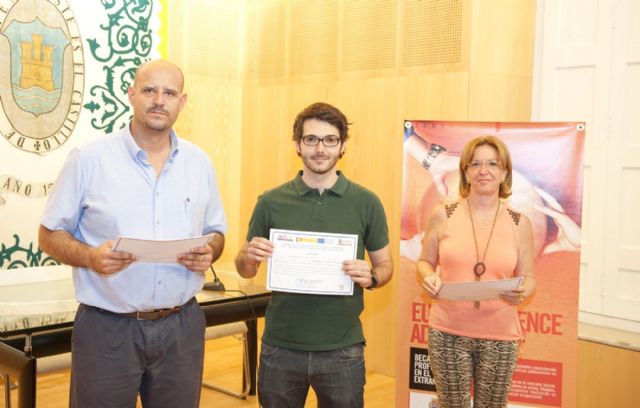 El concejal de Empleo, Diego Ortega, ha entregado esta mañana en la sala de ceremonias del Palacio Consistorial, los diplomas acreditativos a los 22 becarios del Programa de movilidad Leonardo Da Vinci Euroexperience-ADLE V.