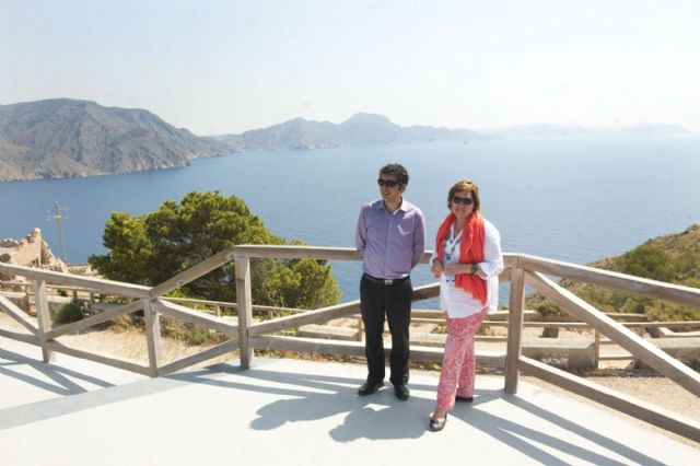 La alcaldesa de Cartagena, Pilar Barreiro, junto con el consejero de Cultura, Pedro Alberto Cruz, han visitado esta mañana la antigua batería de costas de Castillitos, que se encuentra en estos momentos compitiendo por ser uno de los Mejores Rincones de España, dentro de la votación popular por Internet que propone anualmente la Guía Repsol.
