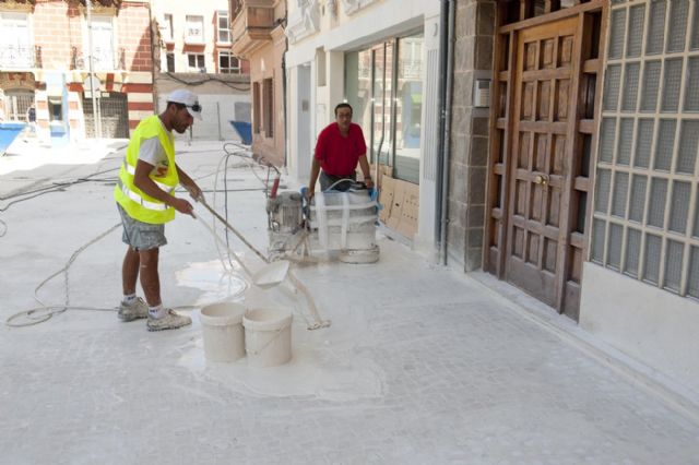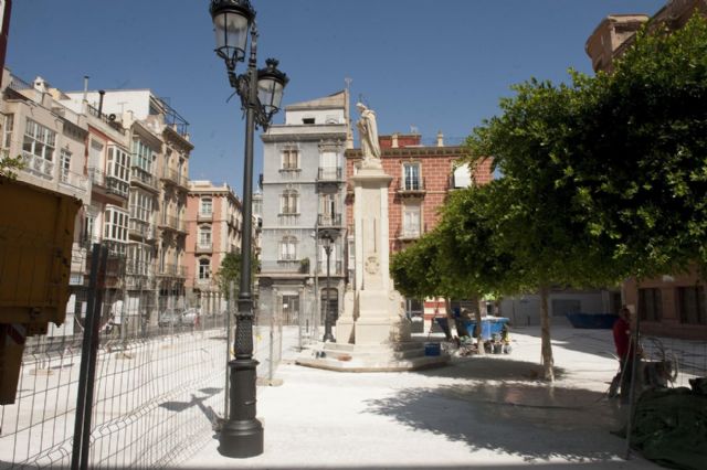 A falta de un par de semanas para la finalización del proyecto de reforma de la Plaza del Risueño, que está llevando a cabo la Concejalía de Infraestructuras del Ayuntamiento de Cartagena, ya puede verse cómo quedará este espacio, en el que en una primera fase de obras, que llega a su fin mañana viernes, se ha pulido el suelo de cemento blanco, se han colocado las piezas que componen el mobiliario urbano y se ha reestructurado el arbolado para darle un aspecto más de plaza, y no tanto de lugar de paso.