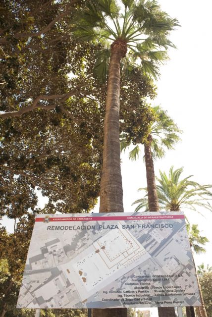 En la Plaza San Francisco, actuación clave de Infraestructuras este verano, las obras continúan su curso según lo previsto, de manera que ya se ha pavimentado más de la mitad de la zona central de la plaza.