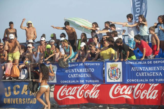 El I Torneo del Sol de Voley Playa de La Manga ha dejado un buen sabor de boca tanto a jugadores como a organizadores y patrocinadores. Y es que, si bien unas 800 personas abarrotaron las gradas de la pista para ser testigos de las finales disputadas en la tarde del domingo 18 de agosto, más de 3.000 personas se acercaron a lo largo del fin de semana a las instalaciones deportivas emplazadas en la playa de las Sirenas de La Manga del Mar Menor.