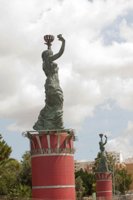 El Ayuntamiento de Cartagena, en colaboración con una empresa especializada de Cehegín, ha acometido recientemente la restauración de las dos figuras que dan entrada al recinto ferial de Carthagineses y Romanos.