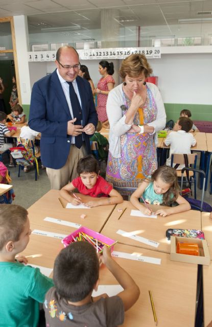 La normalidad ha sido la nota dominante en la mañana de hoy lunes 9 de septiembre, en la que unos 165.000 alumnos de infantil y primaria de más de 600 centros de toda la Región de Murcia volvían a las aulas. En Cartagena, el colegio La Atalaya ha sido el escenario elegido para esta apertura simbólica que ha contado con la presencia del consejero de Educación, Universidad y Empleo, Pedro Antonio Sánchez López, y la alcaldesa de Cartagena, Pilar Barreiro. También han asistido las ediles de Educación, Josefa Maroto, y Cultura, María del Rosario Montero.