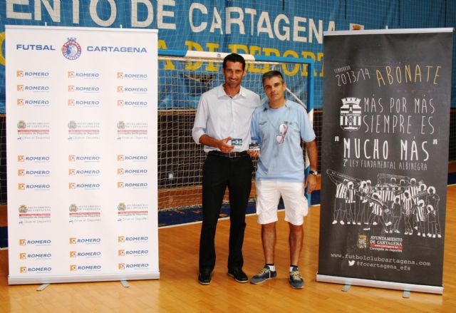 Javi Matía ha recibido el carné de abonado del F.C Cartagena de manos de Mariano Sánchez, mientras que el capitán del Futsal también ha entregado el suyo al capitán del Efesé. Se trata ya no sólo de un gesto de respaldo mutuo hacia las campañas de abonos y de un encuentro fortuito, sino que, a buen seguro y en más de una ocasión, veremos a ambos jugadores a lo largo de la temporada 2013/14 presenciando los partidos oficiales con el objetivo de apoyar al equipo vecino.
