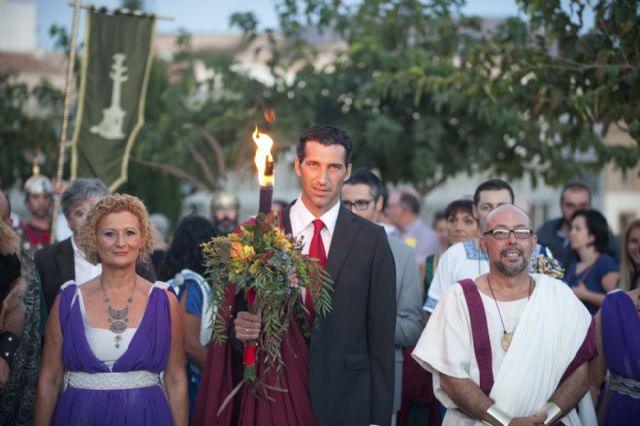 Seis portadores del fuego se sucedían en el transcurso hacia el Parque Arqueológico. Por orden: el presidente de la Federación de Fiestas, Javier Ibernón; la concejala de Festejos, Florentina García; el Sufeta, Ramón Pérez; el Presidente del Senado, Julio Guillamón; el director de la ONCE en Cartagena, Germán Moya; el Festero Honoris Causa, Leandro Sánchez; y el pregonero, Mariano Sánchez.
