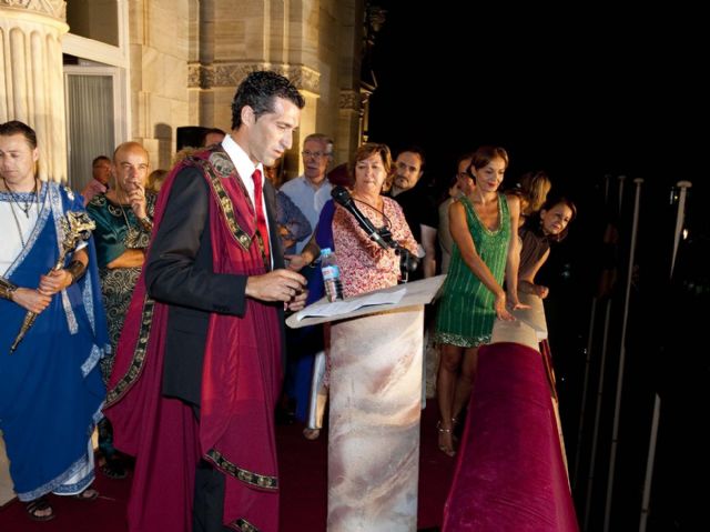 Antes había tenido lugar el nombramiento del Festero Honoris Causa al presidente de la Federación de Asociaciones de Vecinos, Consumidores y Usuarios de Cartagena, Leandro Sánchez, quien ha hecho gala de su sentimiento cartagenero. Acto seguido se sucedieron las presentaciones de las damas Carthaginesas y Romanas, y con ellas se iluminaban los símbolos del Consejo Carthaginés y el Senado Romano, respectivamente, en la fachada del Consistorio, al tiempo que desfilaban los lábaros de tropas y legiones entre los aplausos de sus festeros.