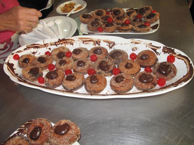 De primero, una ensalada, que ha estado acompañada por un guiso tradicional. Respecto al postre, unas rosquillas de chocolate han hecho las delicias de todos los comensales.