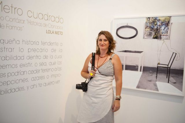 Manzana de oro, Autorretrato, El mirón, La cometa, La barbacoa, Caldero cartagenero, La perra luna...,y así hasta un total de 49 obras que son las que componen la exposición de Lola Nieto, Metro Cuadrado, compuesta de fotografías manipuladas y pintura reflectante, y que desde el pasado 4 de octubre puede ser visitada en el Palacio Molina de Cartagena.