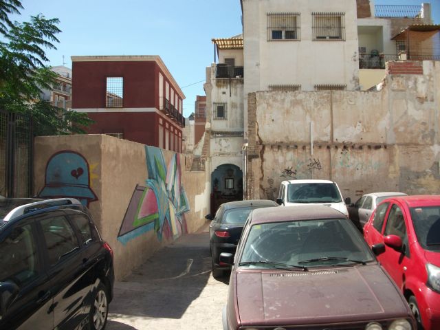 En la misma moción, MC se refiere a la denominada "trastienda del Teatro Romano", esto es, la zona comprendida tras la escena del insigne monumento junto con el entorno de las calles Doctor Tapia Martínez y Soledad, donde el cartagenero que trata de acortar por ahí, se ve inmerso en un mar de coches que le hace pegar la espalda a la pared para ver si es capaz de pasar por allí o no, y es que esta calle está destrozada, tomada inadecuadamente por los coches que sus dueños dejan aparcados en un solar, no se sabe si particular o de propiedad municipal, o incluso de ambos, pero que en ningún caso está cercado conforme a normativa, haciendo de esa calle un aparcamiento y no una zona transitable para los peatones.