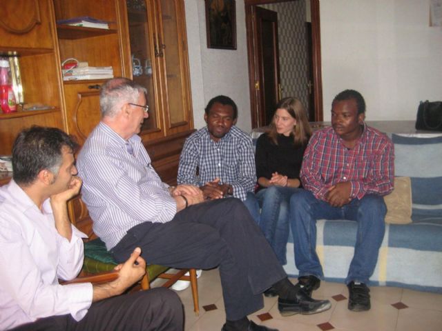El concejal de Atención Social, Antonio Calderón, acompañado del responsable territorial de ACCEM, Mohamed Keballi, ha visitado esta mañana a las personas que actualmente se encuentran alojadas en los dos pisos que ACCEM tiene en Cartagena, con quienes ha charlado y se ha interesado por saber qué motivos personales les han llevado a iniciar un proceso migratorio.