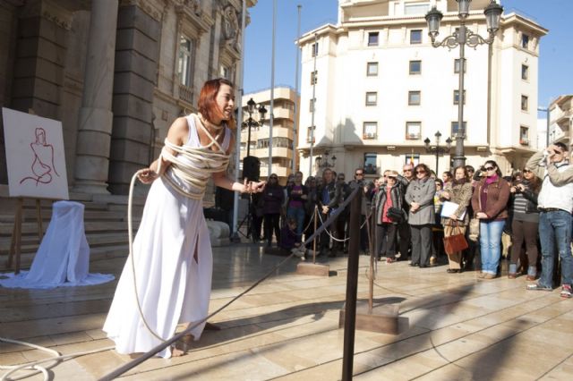 El acto ha culminado con un perfomance, a través del cual, se ha lanzado un mensaje de optimismo y de esperanza a las víctimas de la violencia de género. Una mujer se libraba de las cuerdas que la oprimían, a medida que recordaba que no están solas. La actuación ha finalizado con un abrazo, símbolo de que en toda oscuridad siempre se puede hallar un halo de luz para seguir adelante.