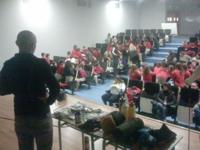 Además de las proyecciones de imágenes y vídeos en el salón de actos del centro, los alumnos tomaron la palabra con la intención de resolver ciertas dudas que les despertaban un especial interés como la alimentación, la preparación física y mental, o los riesgos que esta aventura puede acarrear al deportista cartagenero.