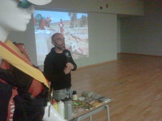 El deportista cartagenero Andres Lledó compartió con los alumnos de Primaria y Secundaria del colegio Miralmonte los detalles de su próximo reto, el Gran Slam 4Deserts2014, con el que atravesará los desiertos más duros del planeta: Atacama (Chile), Gobi (China), Sáhara (Egipto) y el conocido como el desierto de hielo en la Antártida.