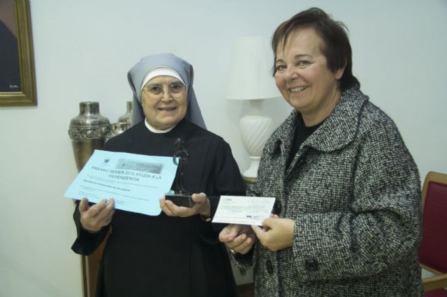 La gerente de la Fundación, María del Rosario Montero, hizo entrega del cheque  a la hermana superiora de la congregación que ayudará a pasar mejor la navidad a los ancianos