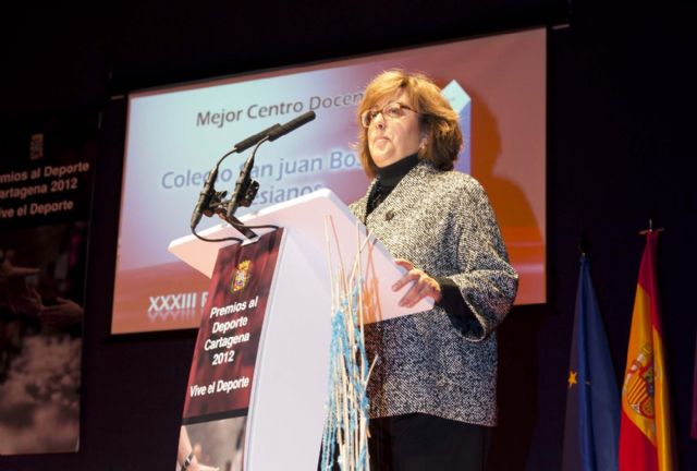 El presidente de la Universidad Católica San Antonio (UCAM), José Luis Mendoza, recogio el premio al mejor patrocinador, de manos de la concejala de Cultura y Turismo, Rosario Montero. Mendoza ahondó en su palabra en la labor de promoción que realiza la universidad entre los deportistas y equipos cartageneros, que se incrementará con la apertura el próximo curso del Campus de Los Dolores.