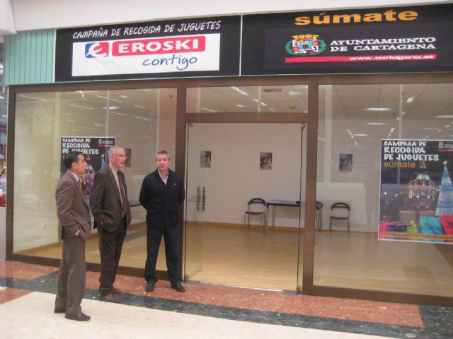 La recogida de juguetes para los niños más necesitados ha comenzado este miércoles con la apertura de dos de los puntos en los que se podrán entregar, el de El Corte Inglés y Eroski. El concejal de Atención Social, Antonio Calderón, acompañado por el director del Instituto Municipal de Servicios Sociales, Antonio Mula, han visitado esta mañana los espacios instalados para esta campaña solidaria.