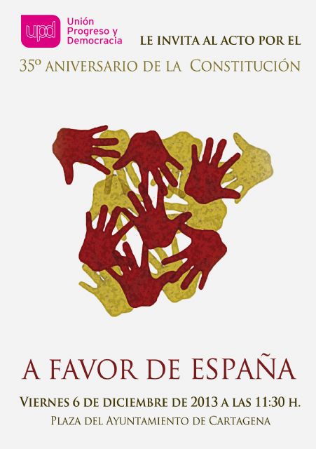 La formación magenta reivindicará la defensa de la Constitución mediante un acto en la calle que desarrollará mañana viernes 6 de diciembre en Cartagena. Como explica el coordinador regional de UPyD, Rafael Sánchez, es de vital importancia "poner en valor el texto constitucional, el que más ha durado en la historia de España, reivindicando la Carta Magna", y por este motivo, mañana 6 de diciembre, Día de la Constitución Española, "salimos a la calle, a favor de la Constitución, a favor de España".