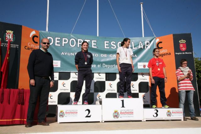 JUVENIL FEMENINO: 1° Begoña Viñals García (Colegio Carmelitas), 2° Marta Meroño (Franciscanos) y 3° Sonia Gallego Martínez (IES Isaac Peral)