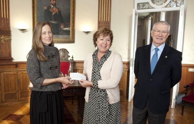 La alcaldesa, Pilar Barreiro, ha sido la encargada de recibir el cheque por valor de 6.000 euros que le ha entregado la directora del Ãrea de Negocio de la Caixa en Cartagena, Sara Abellá, en un acto en el Palacio Consistorial en el que también ha estado presente el concejal de Atención Social, Antonio Calderón.